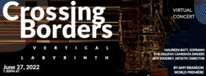Crossing Borders concerts and tours have been supported by SOCAN, Arts Nova Scotia, and FACTOR. And Crossing Borders commissions have been supported by Arts Nova Scotia, the Canada Council for the Arts, Waterloo Arts Fund, and the Ontario Arts Council.